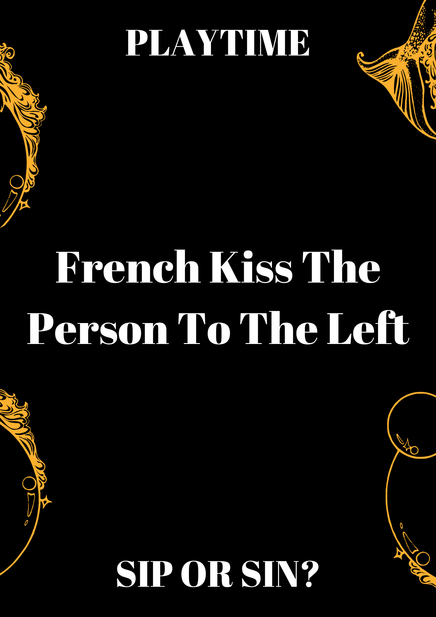 Unleash your wild side with our daring cards in the Group Edition. If you refuse a challenge, take a Sip—or indulge and follow the card's command. The Group Edition features 2 categories designed to get everyone drinking and daring together. 4 Players or More