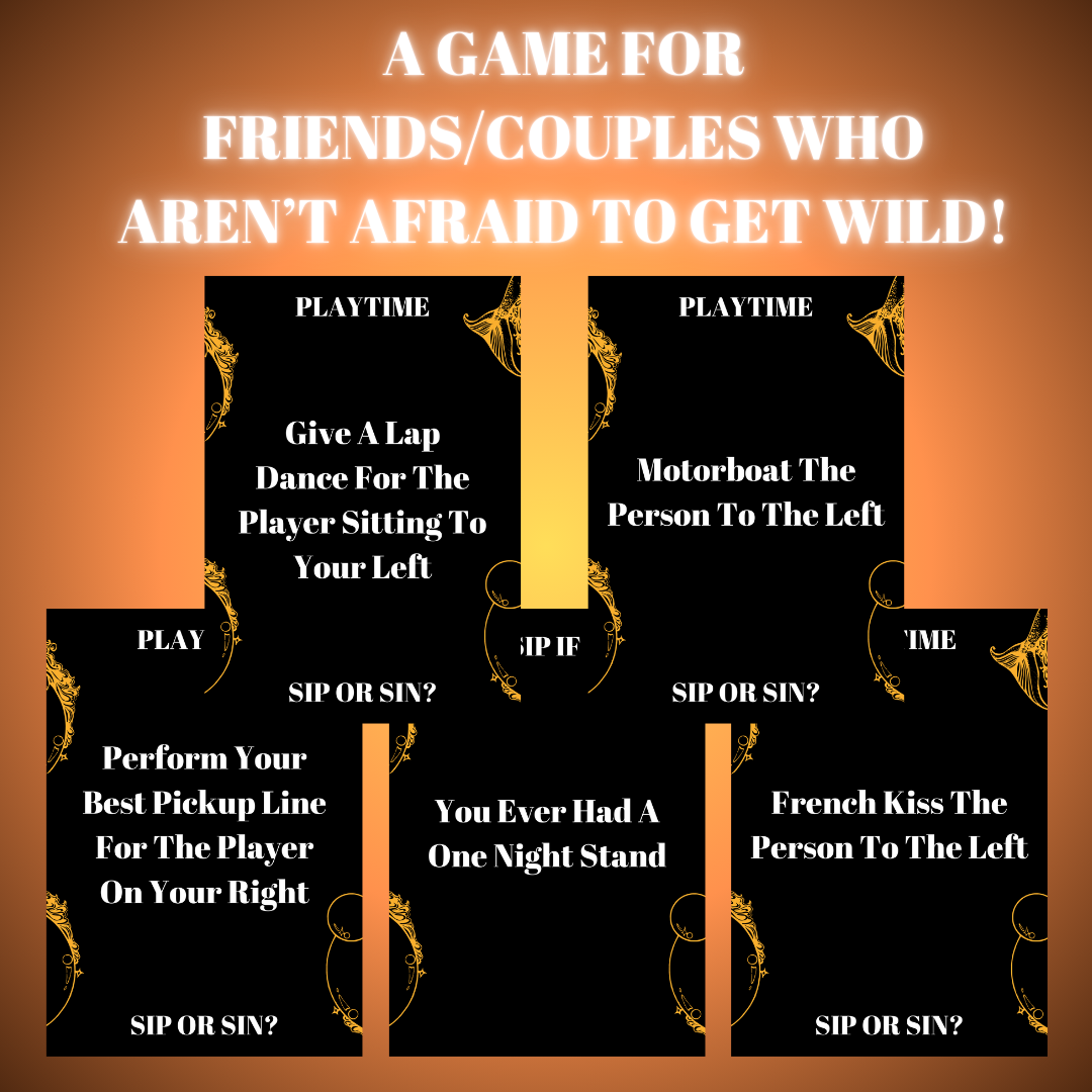 Unleash your wild side with our daring cards. If you refuse a challenge, take a Sip, or sin and follow the card's command. Couple Connections features four categories designed to get you both drunk and wild.